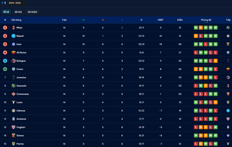 Với những người yêu Serie A – nơi chiến thuật, sự bền bỉ và khả năng điều chỉnh của HLV đóng vai trò lớn – việc có đầy đủ thông tin để phân tích sẽ giúp họ thưởng thức giải đấu sâu sắc hơn. Rakhoi TV giúp fan nhìn BXH dưới dạng dữ liệu chuyên sâu, không còn là bảng số liệu đơn giản mà trở thành công cụ đọc hiểu toàn bộ mùa giải.