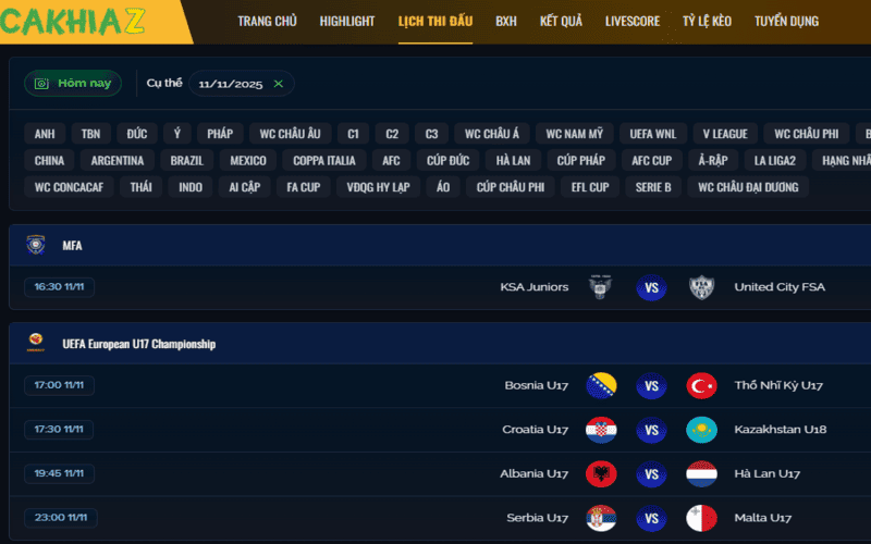 CakhiaTV cam kết không để người hâm mộ bỏ sót bất kỳ giải đấu quan trọng nào. Nền tảng này đã tổ chức lịch thi đấu theo một cấu trúc rõ ràng, cho phép người dùng dễ dàng lọc và tìm kiếm theo sở thích.