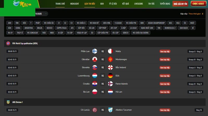 Chỉ cần mở trang, anh em sẽ thấy toàn bộ lịch thi đấu của:
