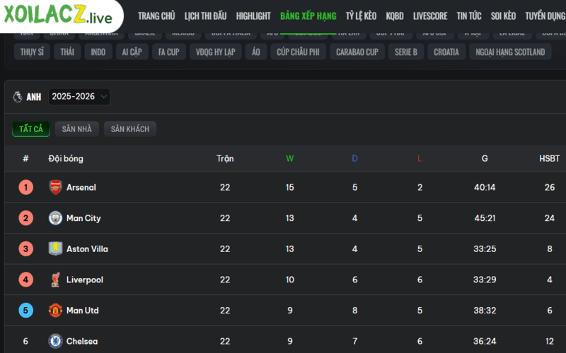 Bảng xếp hạng mới nhất trên Xoilac Link có gì đáng chú ý?