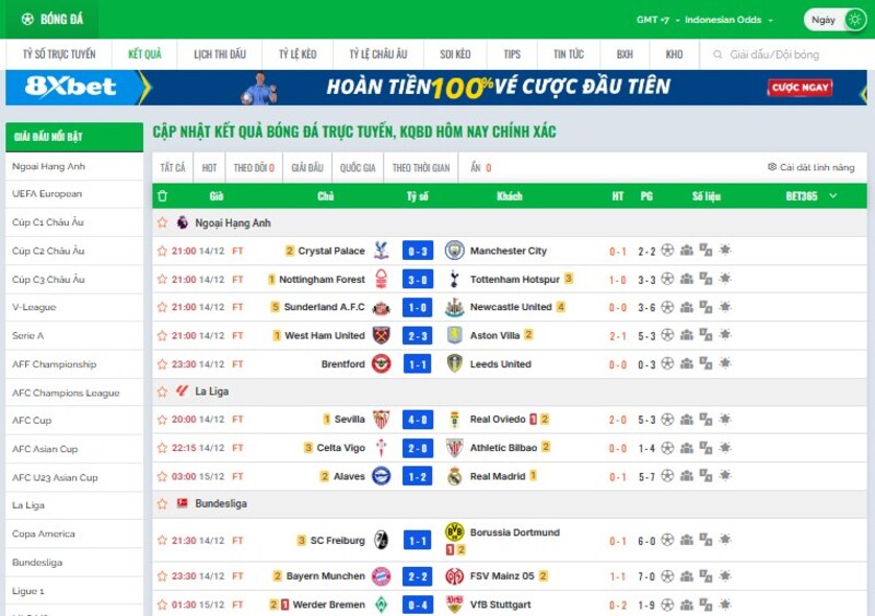 - Xem kết quả bóng đá hôm nay theo thời gian thực